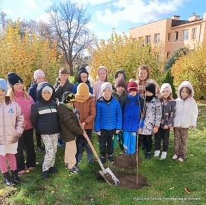 10 października świętowaliśmy Dzień Drzewa. Odwiedziliśmy nasz suchodrzew, posadzony 2 lata temu z okazji tego święta. Jest piękny, rośnie i ozdabia otoczenie naszej szkoły. W doniczkach powinny wykiełkować kasztanowce. Posadziliśmy też katalpę. Hasło tegorocznego święta to „Zasadzimy...