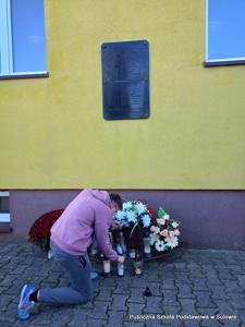 Jak co roku, w związku ze zbliżającym się Świętem Zmarłych przedstawiciel Samorządu Uczniowskiego wybrał się 30 października przed budynek szkoły, aby poprzez złożenie kwiatów i symboliczne zapalenie zniczy pod tablicą pamiątkową złożyć hołd bohaterom.