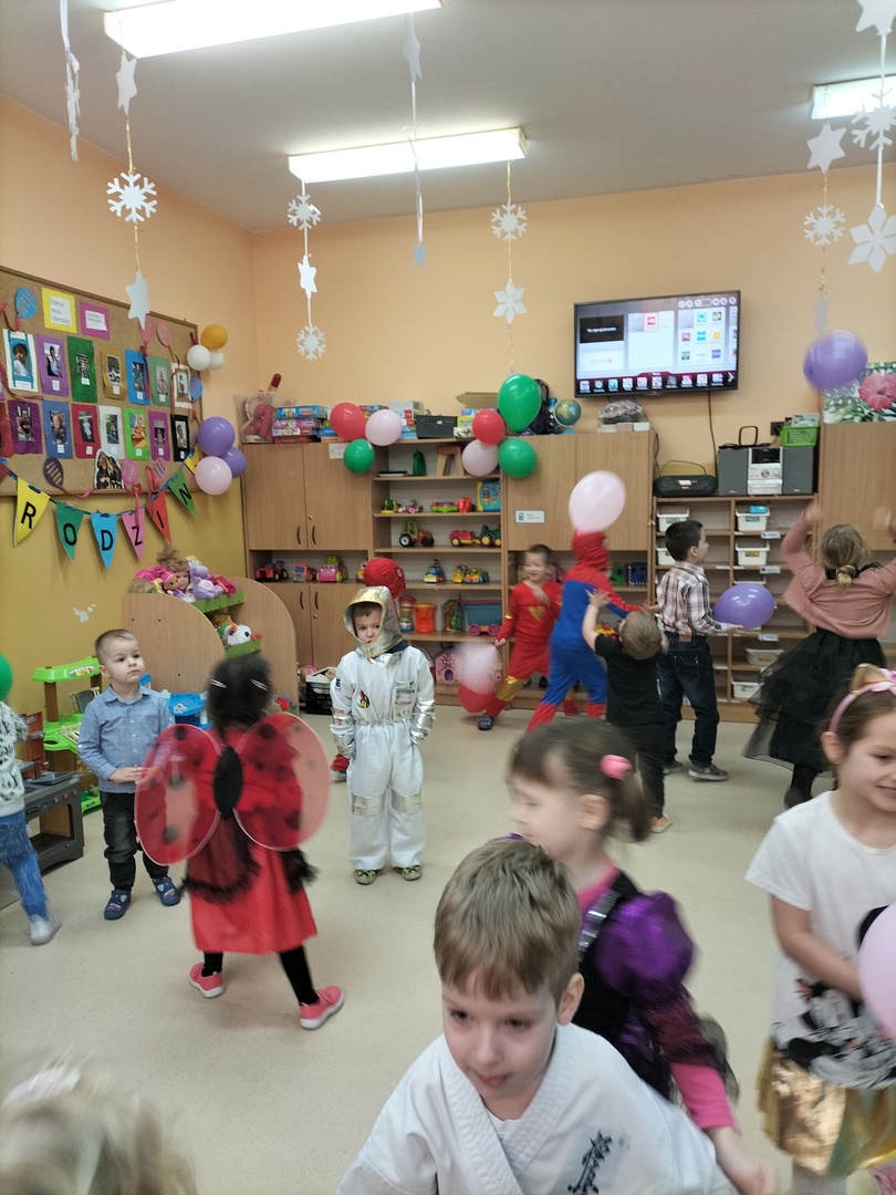 12 lutego 2024 r. w naszych grupach przedszkolnych odbył się Bal Karnawałowy. Tego dnia już od rana w sali było kolorowo i wesoło. Tańce przeplatały zabawy. Dziękujemy Rodzicom za przygotowanie pysznego poczęstunku. Wspólne towarzystwo i zabawa przyniosły wiele radości naszym przedszkolakom, a to było głównym celem tego balu.