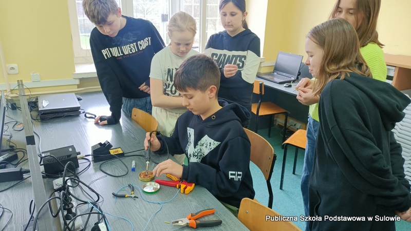 Nauka lutowania na lekcjach techniki z wykorzystaniem sprzętu otrzymanego w ramach projektu "Laboratoria Przyszłości"