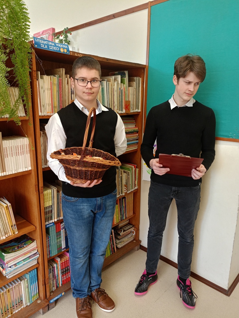 Również chłopcy w imieniu Samorządu Uczniowskiego częstowali całą społeczność szkolną słodkościami życząc spełnienia marzeń, samych słonecznych dni oraz uśmiechu zawsze goszczącego na twarzach.