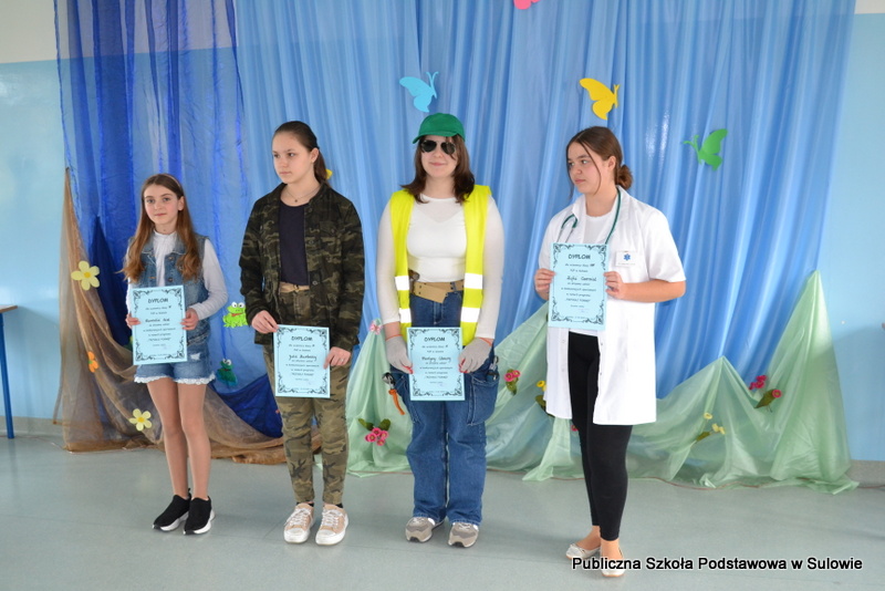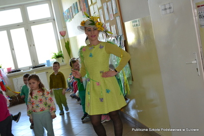 Dodatkowo w ramach obchodów Pierwszego Dnia Wiosny uczniowie przebierali się w stroje symbolizujące różne zawody, wykazali się również kreatywnością w poszukiwaniu „zastępstwa” dla tradycyjnego plecaka. Zeszyty i podręczniki zostały spakowane w wózki dziecięce, kosze na śmieci, walizki, skrzynki, kosze sklepowe, a nawet opony. Liczyła się pomysłowość i inwencja twórcza, a tego naszym uczniom nie brakowało.