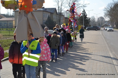 Dzieci z klas I-III wraz z wychowawczyniami przygotowały marzannę symbolizującą odchodzącą zimę. Wszyscy w barwnym korowodzie i z wielką radością pożegnali kukłę.