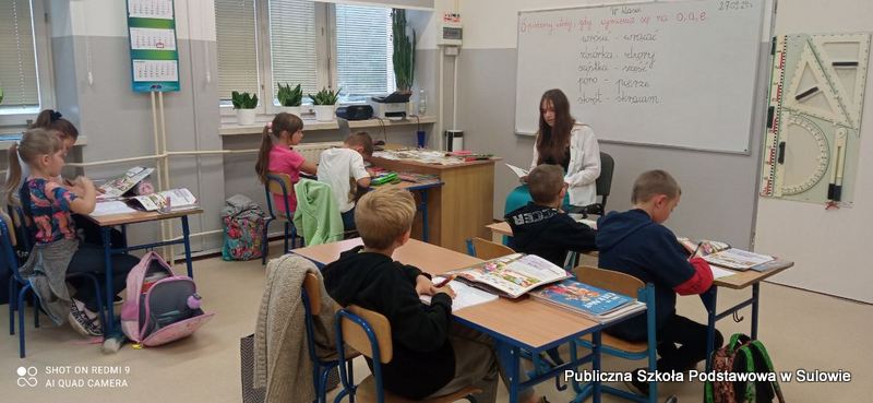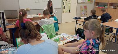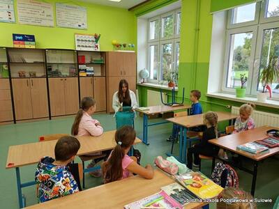 W tym roku uczennica klasy VII Julia Bartecka odwiedziła najmłodsze dzieci z oddziałów przedszkolnych oraz uczniów klas I - III i przeczytała  fragmenty opowiadań Janiny Porazińskiej.
