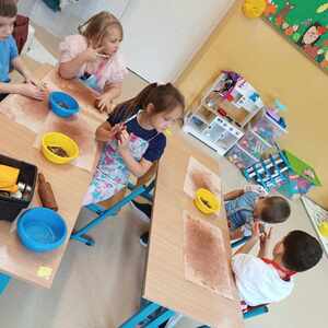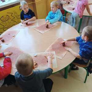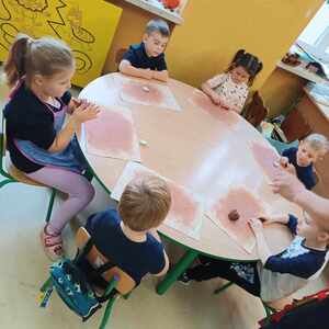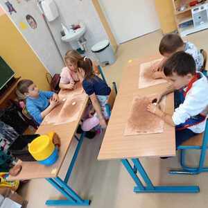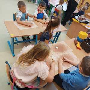 15.10.2024 r. uczniowie klas I-III oraz Przedszkolaki podzieleni na dwie grupy wzięli udział w warsztatach "Jesień z gliną" organizowanych przez Akademię Bursztynu. Podczas warsztatów dzieci dowiedziały się co to jest glina, jak ją pozyskać i do czego można ją wykorzystać. Na zajęciach powstały jeże z kolcami jeżowców, świecznik i ozdobiony pastą złotniczą podstawki na jesienne skarby.