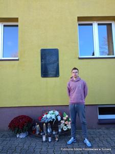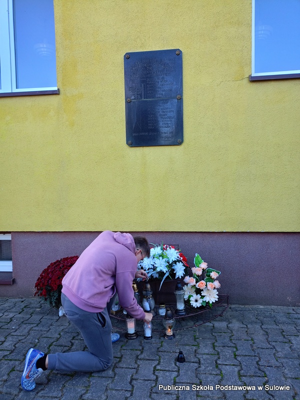 Jak co roku, w związku ze zbliżającym się Świętem Zmarłych przedstawiciel Samorządu Uczniowskiego wybrał się 30 października przed budynek szkoły, aby poprzez złożenie kwiatów i  symboliczne zapalenie zniczy pod tablicą pamiątkową złożyć hołd bohaterom.