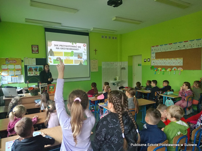 Dnia 23 października odbyło się spotkanie klas I-III  z przedstawicielem Powiatowej  Stacji Sanitarno-Epidemiologicznej w Kraśniku. Na spotkaniu poznaliśmy budowę grzyba, grzyby jadalne i trujące. Zapoznaliśmy się z zasadami zachowania się w lesie i właściwym zbieraniem grzybów. Jak przygotować się na grzybobranie.