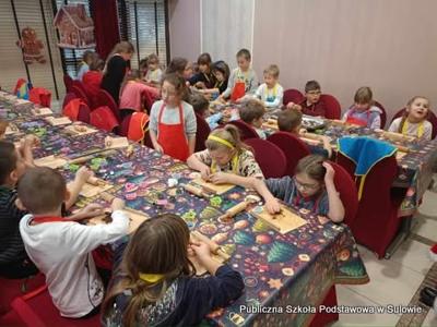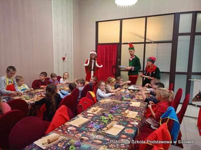 Uczniowie klas I-III świętowali mikołajki w Pracowni Mikołaja w Lublinie wspólnie z Elfami, Mikołajem i jego żoną. Podczas warsztatów piekli świąteczne pierniczki oraz dekorowali bombki choinkowe.