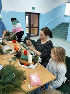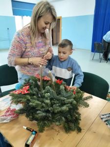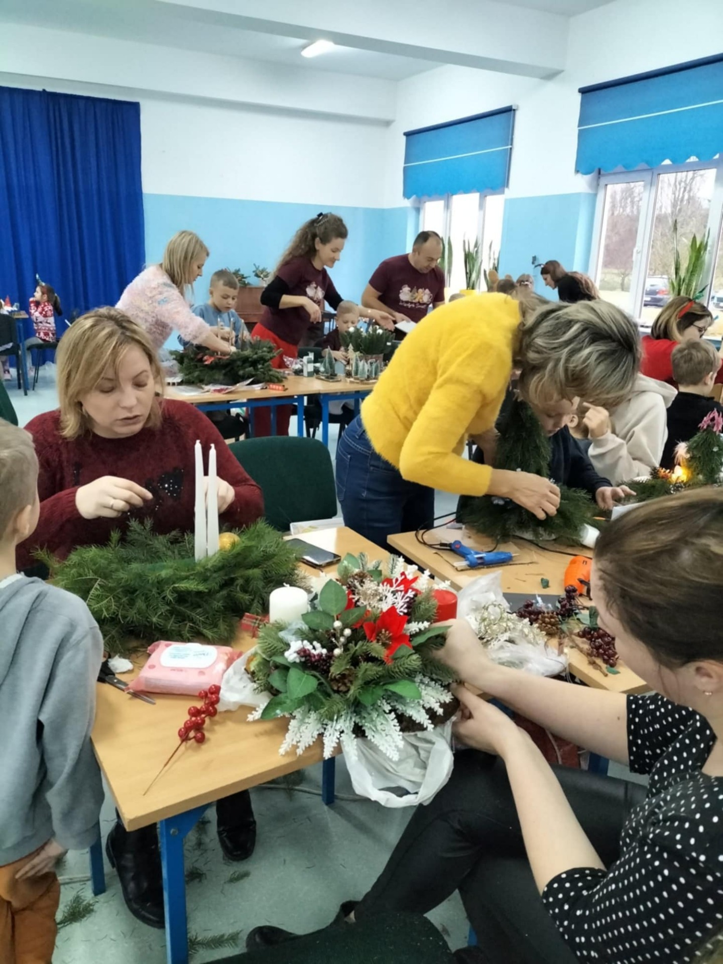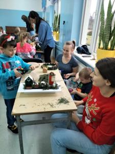 Święta Bożego Narodzenia to szczególny czas. Zapach pomarańczy, piernika i przystrojona choinka – to buduje magiczny świąteczny klimat. I właśnie po to, aby i w naszym przedszkolu zagościła świąteczna atmosfera 10 grudnia zorganizowałyśmy warsztaty Bożonarodzeniowe z udziałem Rodziców. Celem było wykonanie stroików świątecznych. Uczestnicy warsztatów z zapałem wykonywali piękne ozdoby, wykazując przy tym wiele pomysłowości i kreatywności. Wspólna twórczość w atmosferze zabawy, zaangażowanie, a co najważniejsze czas, który dzieci spędziły z Rodzicami to bardzo cenne doświadczenie dla obydwu stron. Z całego serca dziękujemy Rodzicom za przybycie i wspólnie spędzony czas.