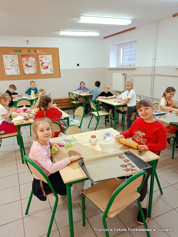 W ramach świątecznych przygotowań uczniowie klasy I wspólnie dekorowali pierniczki. Zabawa była doskonała, a w szkole unosił się zapach korzennych przypraw.