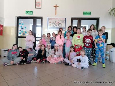 28 stycznia bieżącego roku społeczność naszej szkoły wzięła udział w IV edycji akcji „Dzień w piżamach”. Tego dnia uczniowie nie tylko przyszli do szkoły ubrani w piżamy, ale mieli też okazję zrobić coś dobrego dla innych. Z tej okazji Wolontariat i Samorząd Uczniowski zorganizował licytację fantową oraz sprzedaż babeczek.