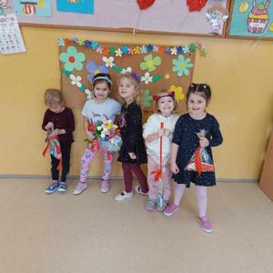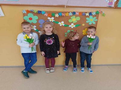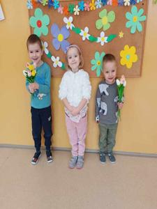 W piątek, 7 marca wszyscy chłopcy składali życzenia dziewczynkom i swoim paniom. Nie obyło się bez słodyczy, drobnych upominków i kwiatów.