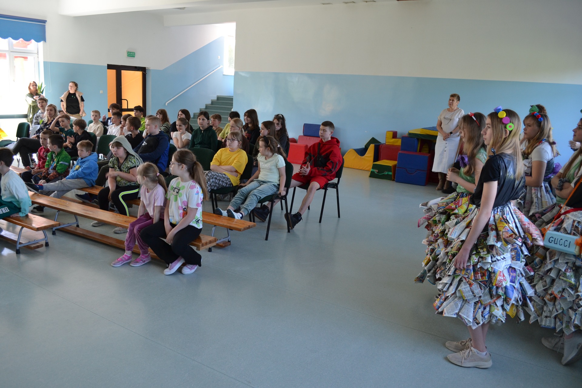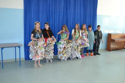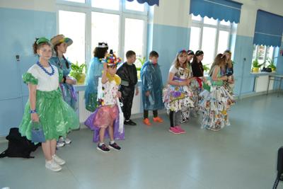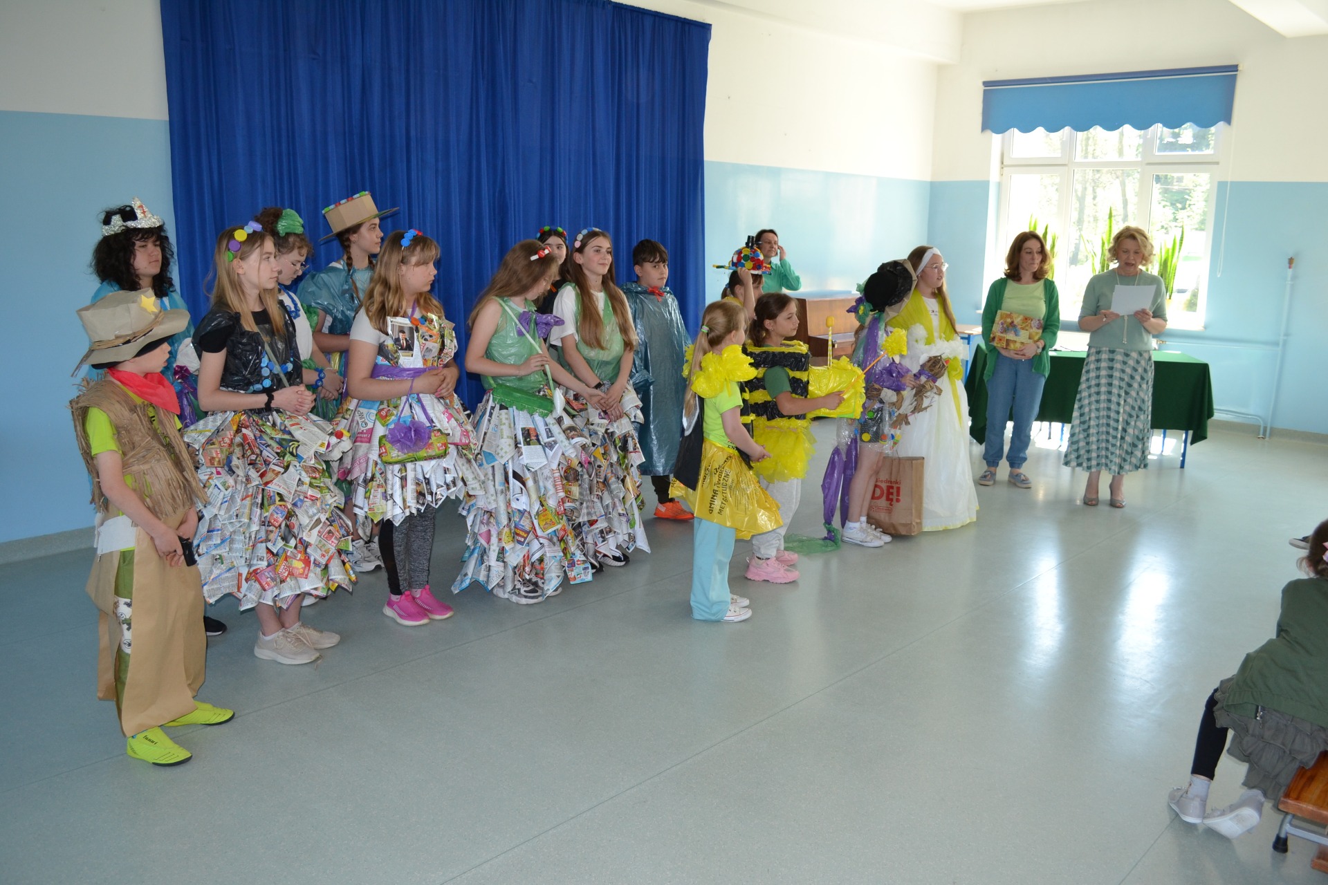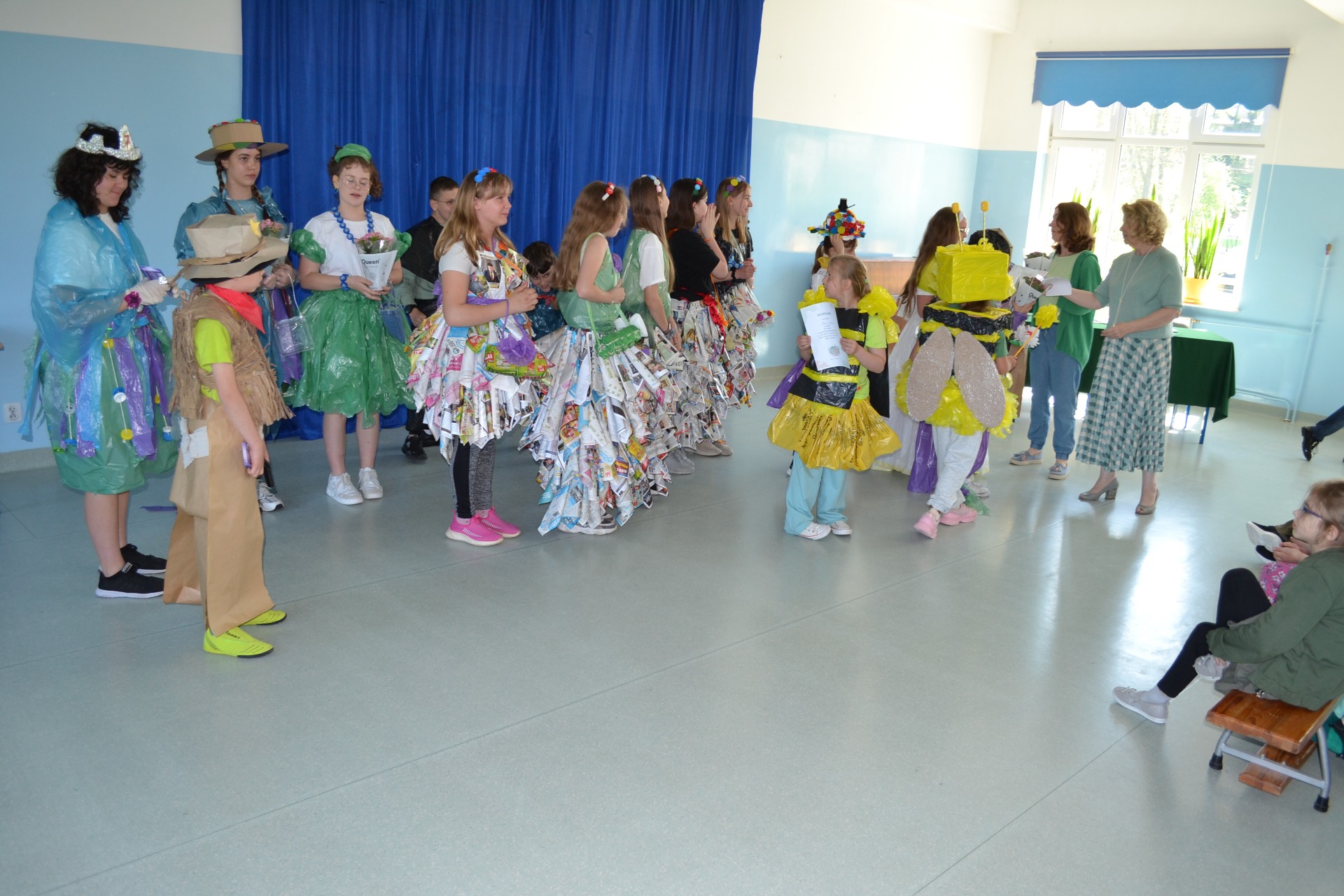 Ponadto odbyło się podsumowanie międzyklasowego konkursu na  „EKO-STRÓJ”, który polegał na wykonaniu stroju ekologicznego z odpadów przeznaczonych do recyklingu. Celem konkursu było kształtowanie postaw proekologicznych i zwrócenie uwagi na możliwość umiejętnego wykorzystania surowców wtórnych. Uczestnicy konkursu wykazali się niesamowitą kreatywnością. Do stworzenia swoich strojów wykorzystali m.in. kartony, gazety, nakrętki, worki foliowe, zużyte płyty CD. Każdy strój był oryginalny, pomysłowy i  pracochłonny.