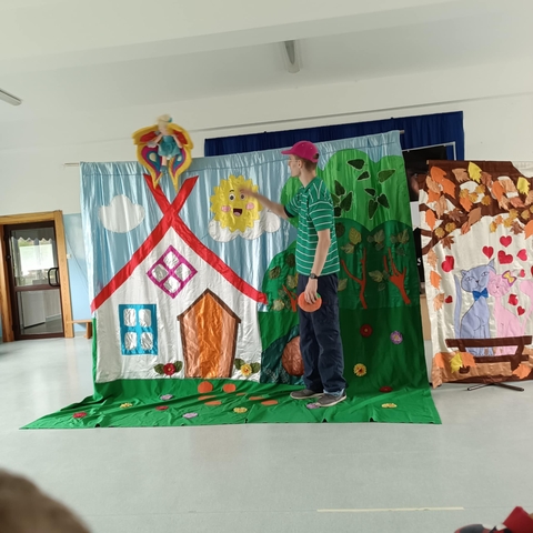 Dnia 6.05.2025 r. do naszej szkoły zawitali aktorzy z teatru Magik. Zaprezentowali interesujący i wesoły teatrzyk pt; „Zaczarowana baśń o przyjaźni”. Główny bohater Krzyś przeniósł nas do zaczarowanego lasu. Dzięki przyjaciołom, których tam spotkał odkrył, jak ważną wartością w życiu jest przyjaźń. Historia bohatera nauczyła dzieci szacunku i wyrozumiałości w stosunku do innych oraz prawidłowej relacji pomiędzy rówieśnikami. Uczniowie poznali również zagadnienia dotyczące ekologii i dbania o przyrodę.
