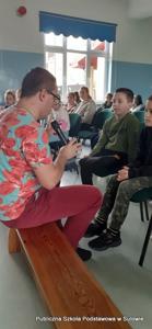 Dnia 29 września w naszej szkole odbyło się spotkanie z podróżnikiem panem Marcinem Chomą. Temat spotkania: Opowieść o Argentynie. Podczas tej nietypowej lekcji geografii mogliśmy się dowiedzieć o położeniu geograficznym Argentyny, historii powstania kraju, kulturze tanga argentyńskiego. Mogliśmy również zobaczyć zdjęcia przedstawiające największe zabytki Buenos Aires, piękno wodospadów Iguazu, poznać świat roślin i zwierząt tego państwa. Dodatkową atrakcją były rekwizyty przywiezione z Argentyny przez pana podróżnika.