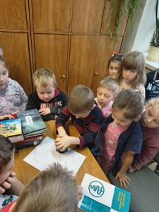 Podczas wizyty mali goście zwiedzili bibliotekę i poznali różne jej działy. Największe zainteresowanie wzbudziły półki z bajkami i książkami dla najmłodszych.