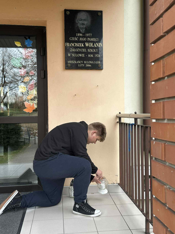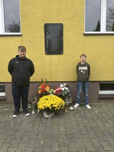 W związku z nadchodzącym dniem Wszystkich Świętych przedstawiciele Samorządu Uczniowskiego udali się przed budynek szkoły, aby poprzez złożenie kwiatów i  symboliczne zapalenie zniczy pod tablicą pamiątkową złożyć hołd bohaterom.