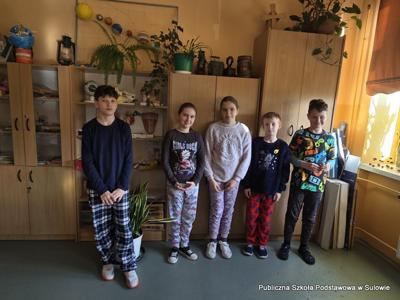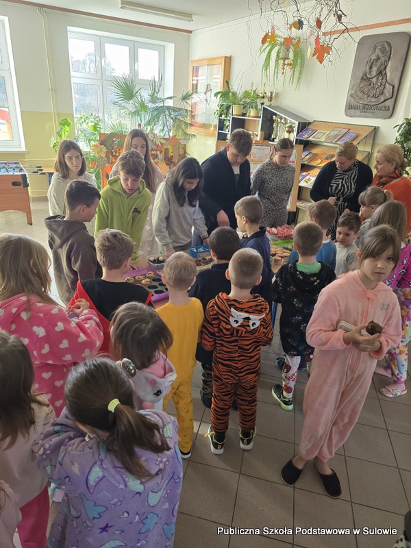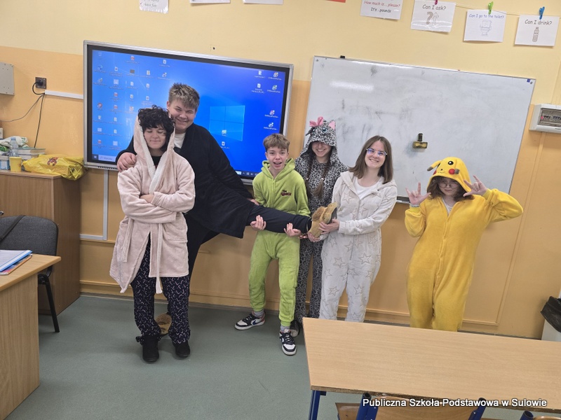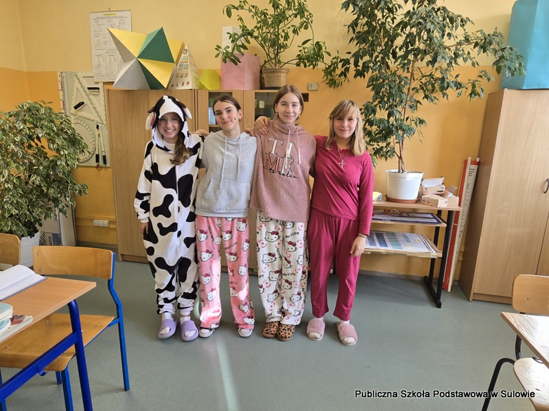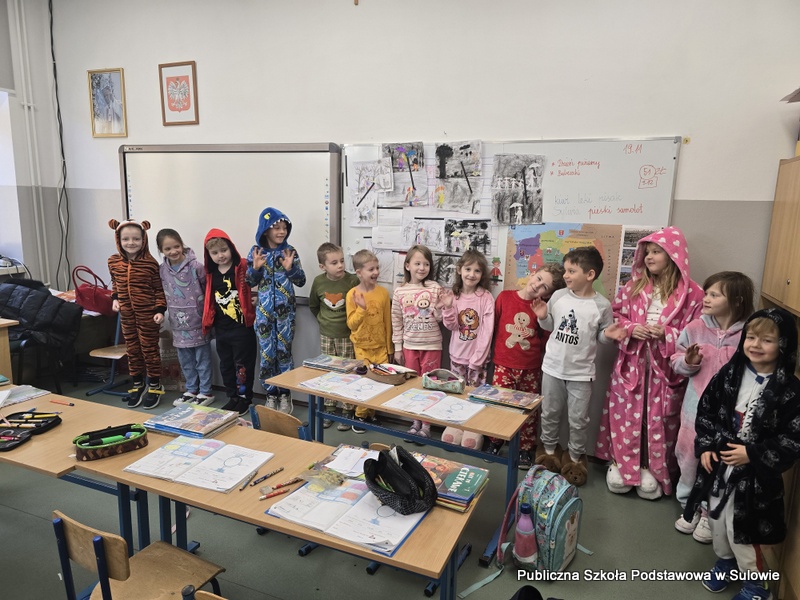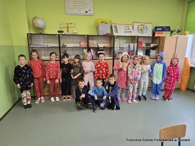 w piżamie, szlafroku, kapciach…. Ten drobny gest, który wszystkim uczniom i nauczycielom dał powody do uśmiechu jest symbolicznym gestem solidarności z dziećmi chorymi, przebywającymi na oddziałach onkologicznych.