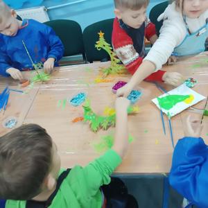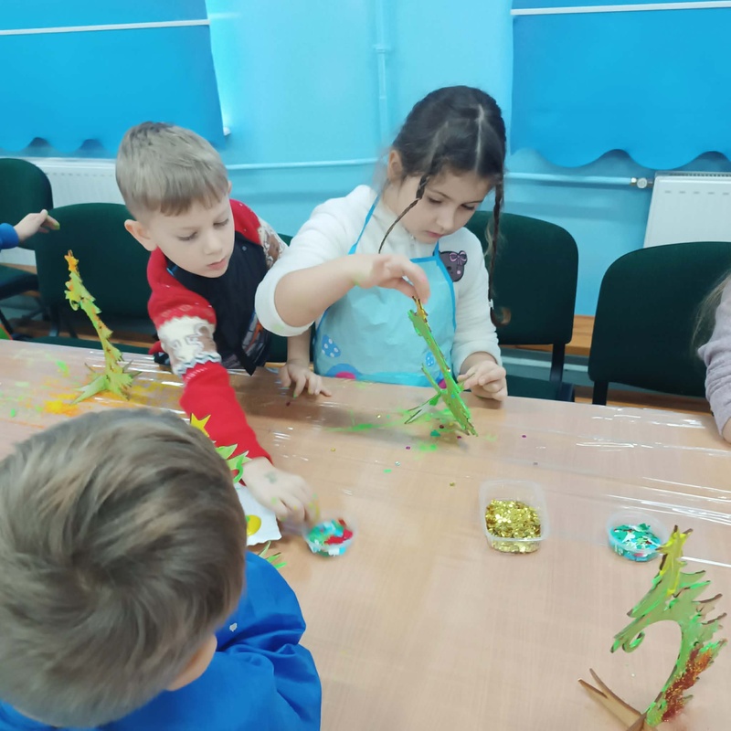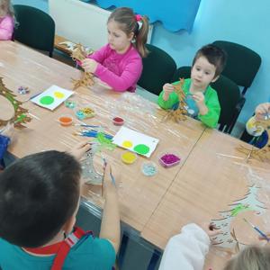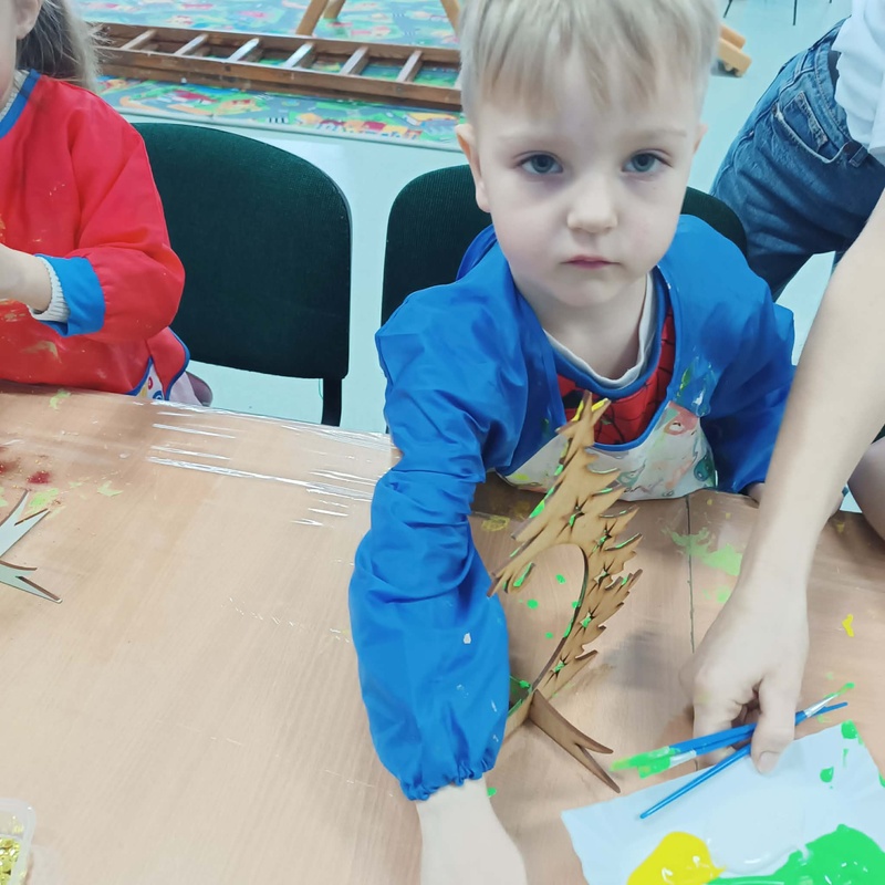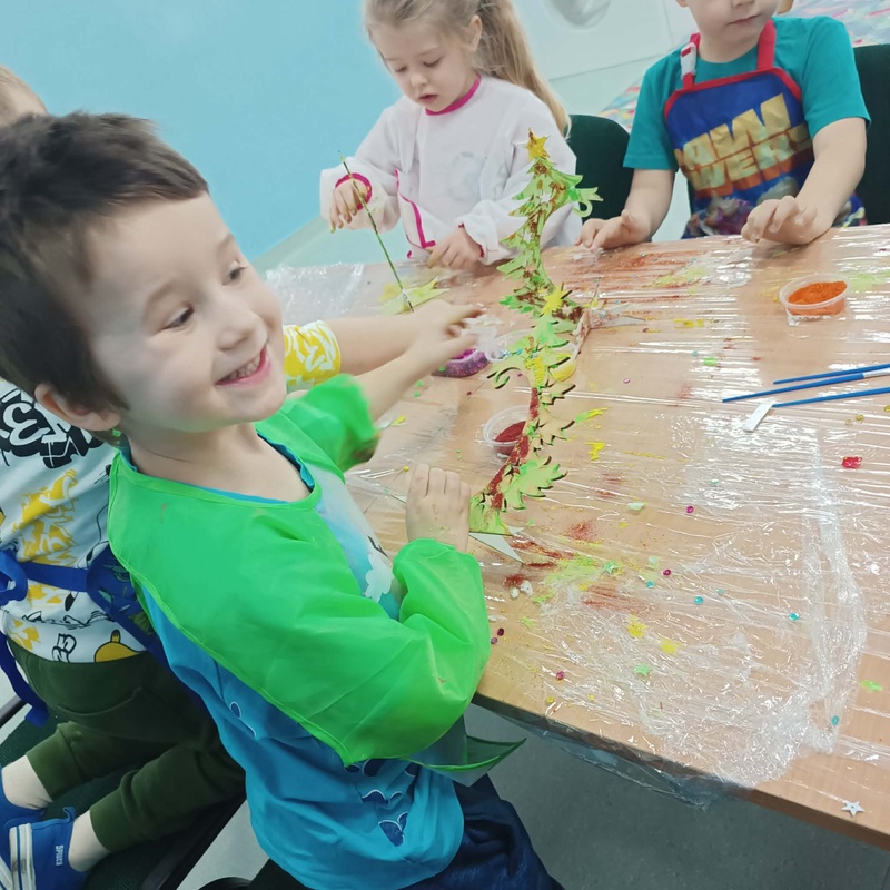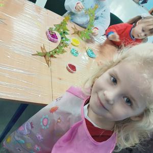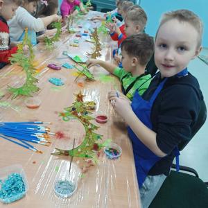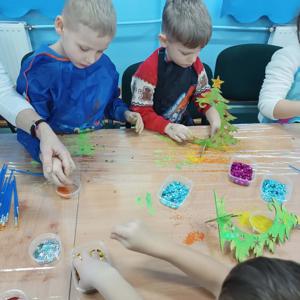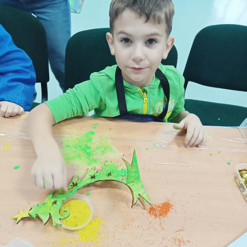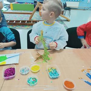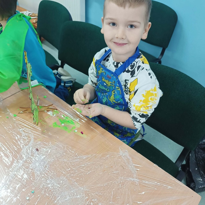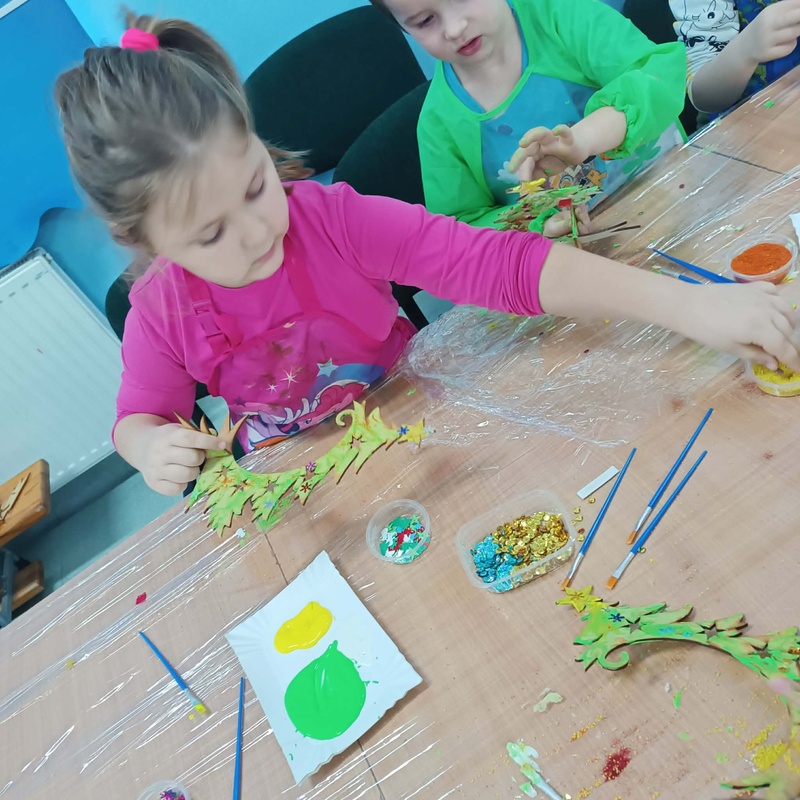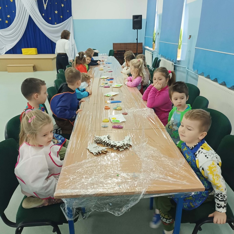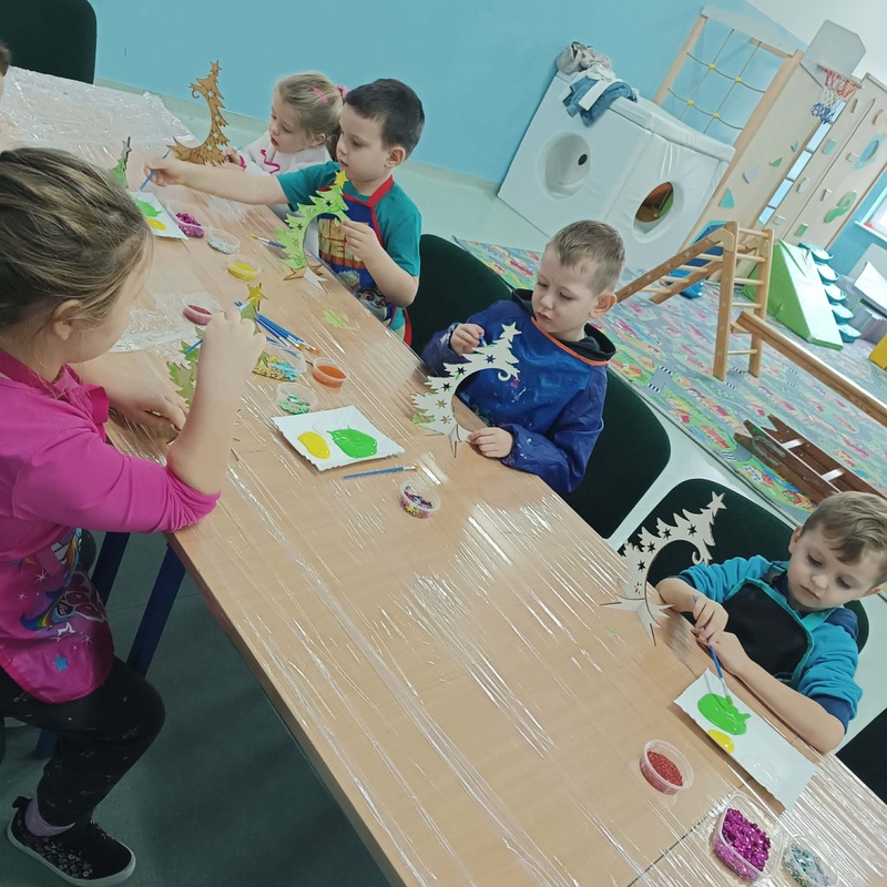 10 grudnia w naszym przedszkolu odbyły się świąteczne warsztaty, podczas których dzieci tworzyły własne, kolorowe ozdoby bożonarodzeniowe. Przedszkolaki z zapałem malowały, dekorowały i ozdabiały drewniane choinki oraz bombki, korzystając z farb, brokatu i wielu błyszczących dodatków.