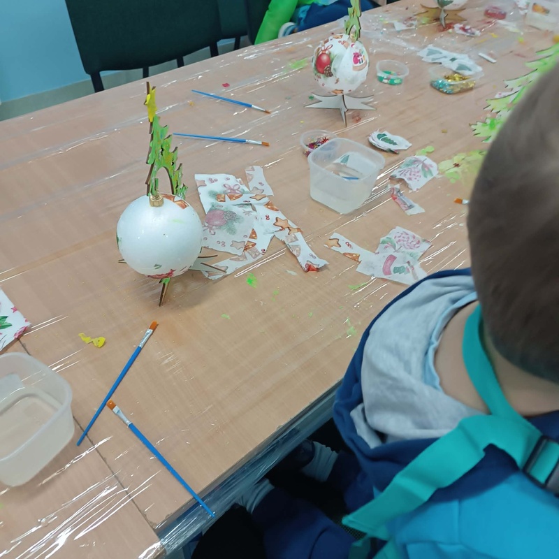Powstały przepiękne, niepowtarzalne dekoracje, które dzieci z dumą zabrały do domów. Warsztaty przebiegły w radosnej, świątecznej atmosferze pełnej kreatywności i uśmiechu.
